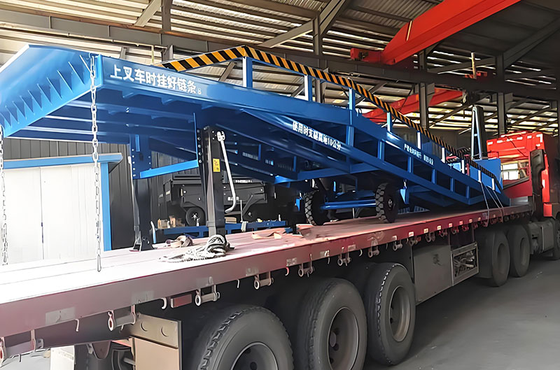 移動式登車橋的主要作用是,在地平面與車廂之間搭起一座橋,有了它,叉車能直接從地面攜帶貨物駛入汽車車廂內部,進行批量裝卸作業。使用時,前板架在貨車車廂上,起到承載重量的作用,減少了貨物重量對液壓登車橋的壓力,了液壓登車橋的使用壽命,從而達到長期使用的目的。